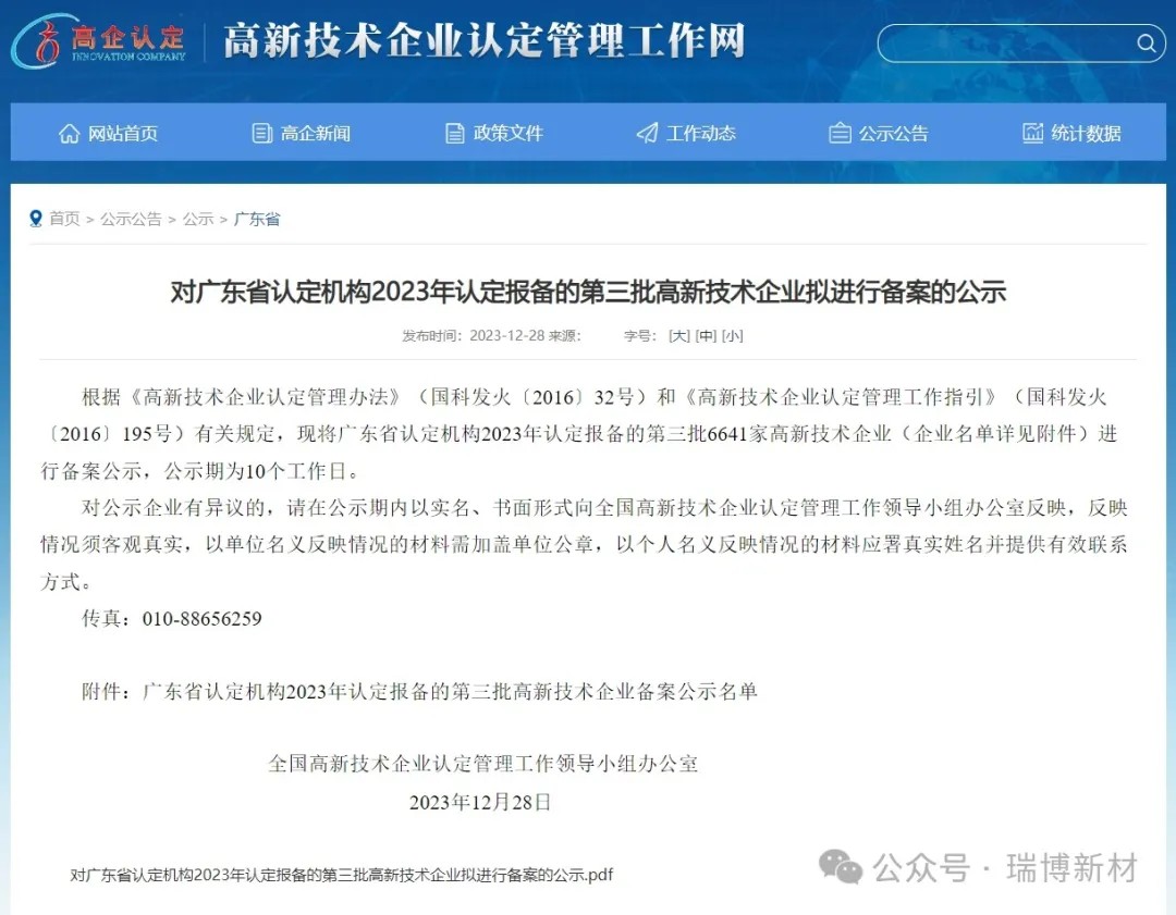 On December 29, 2023, Riebom passed the approval and certification of strict procedures such as enterprise declaration, preliminary review recommendation, expert review, national review, and publicity, and finally obtained the qualification of "National High-tech Enterprise". This qualification will further enhance the influence of Riebom in the new chemical materials industry and lay a solid foundation to expand a broader development space.